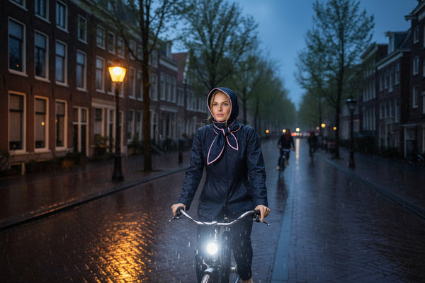 Nu maken we fietsen veiliger, droger én mooier met stijlvolle, waterafstotende sjaals en helmsjaals, zodat meer mensen met plezier bescherming dragen. Stappen we samen veilig de fiets op?”